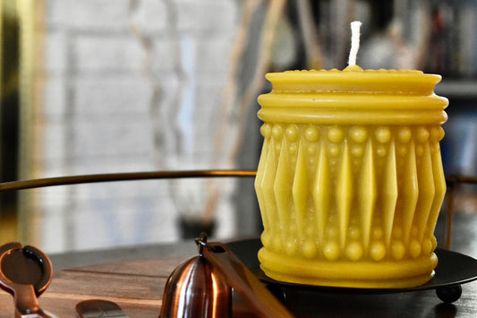 Beeswax has always been known for its simplicity and superiority. This natural wax produced by honeybees was first discovered by humans over 9,000 years ago and was most likely used for a variety of applications such as a waterproofing agent for pottery vessels, fuel, and religious ceremonies. Candles made with beeswax burn clean and produce negative ions that purify the air, ridding your home of allergens, toxins and dust. While burning, the beeswax emits a calming golden glow similar to the sun creating a cozy, serene environment.